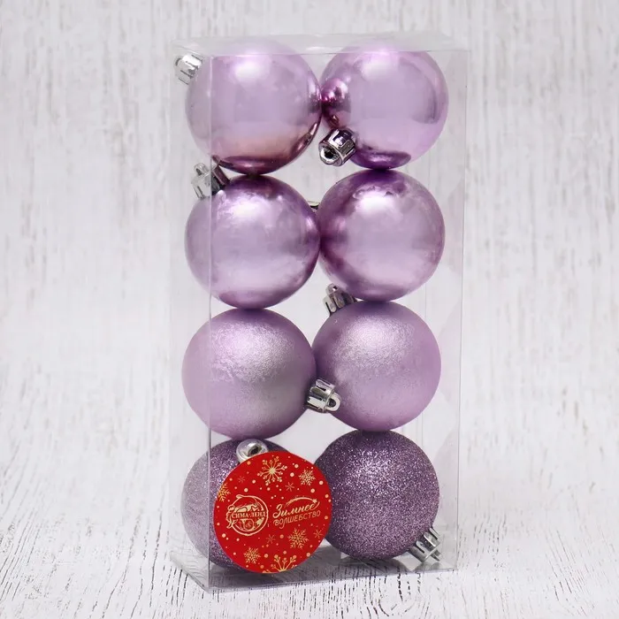 Погрузитесь в атмосферу праздника с набором ёлочных игрушек «Классика ассорти». Эти сиреневые шары диаметром 5 см станут стильным дополнением вашей праздничной елки. Набор из 8 однотонных пластиковых шаров в стиле шебби-шик добавит новогоднему декору изысканности и утонченности. Идеальное решение для тех, кто ценит классику и простоту.¶