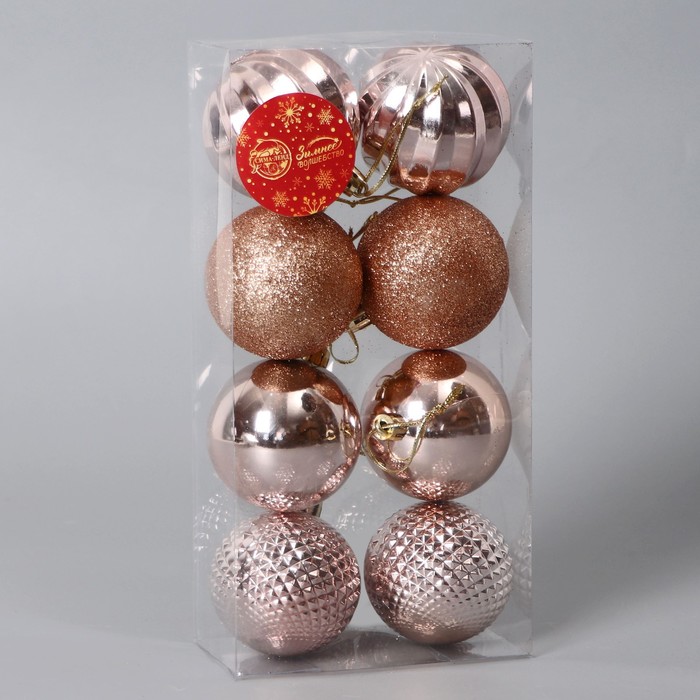 Ёлочные игрушки «Классика», шары новогодние, набор 8 шт., d=6 см, коричнево - розовый — Характеристики