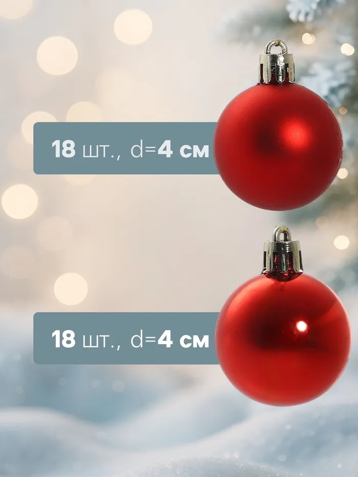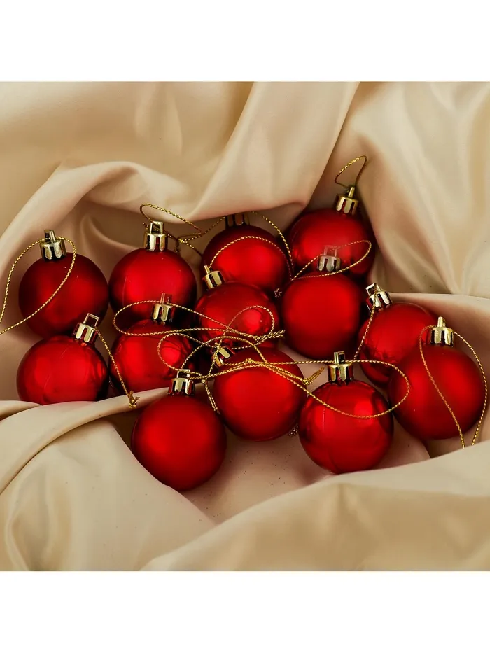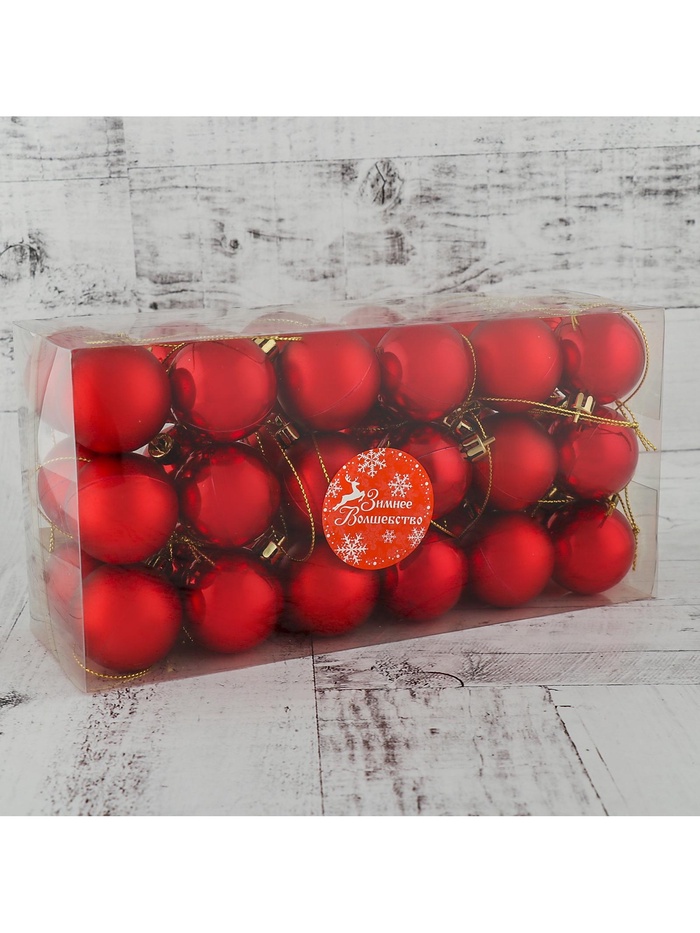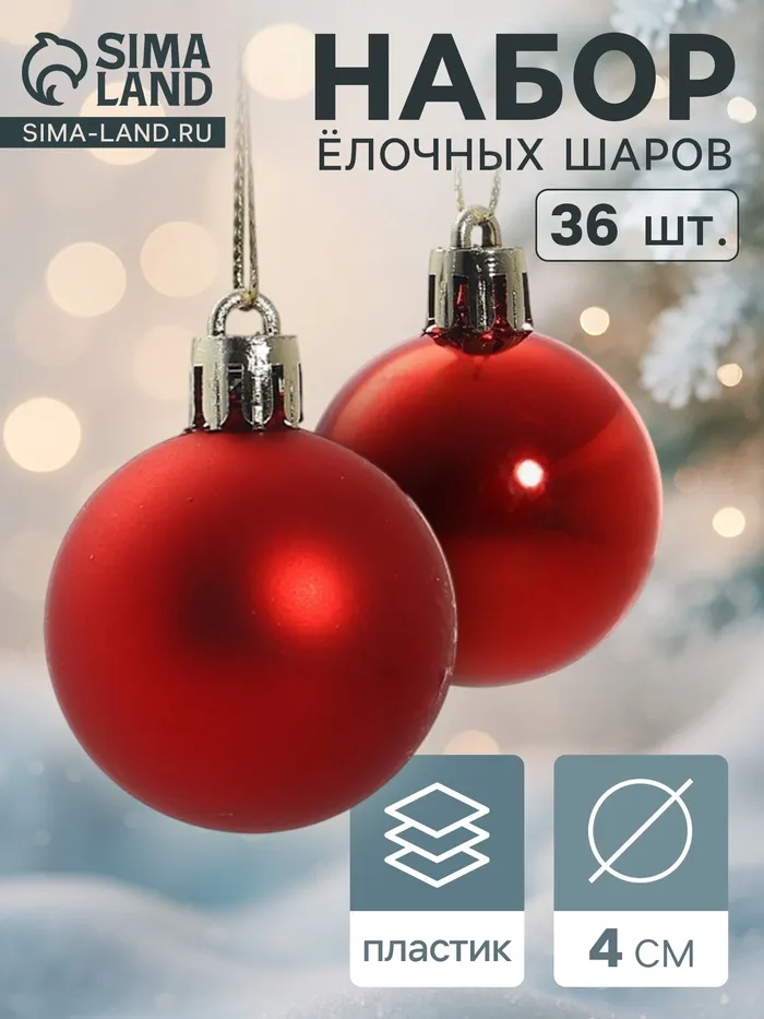 Новогодние шары красного цвета, 4 см в диаметре, набор из 36 штук — это базовый, но яркий элемент для плотного и гармоничного украшения ёлки. Насыщенный оттенок и большое количество игрушек позволяют создать праздничную атмосферу без лишних усилий. Такие шары подходят под разные стили: от пышного «новогоднего барокко» до минималистичного скандинавского дизайна.