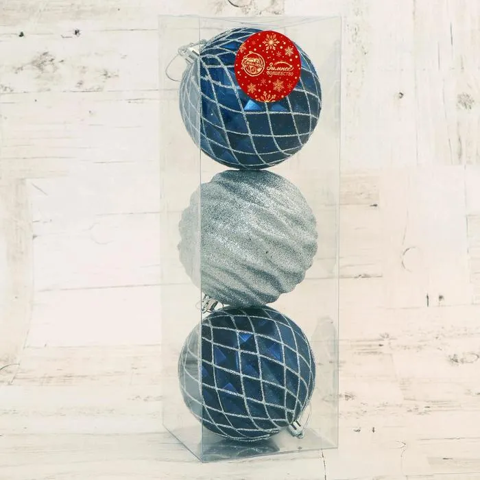 Добавьте изюминку в ваше новогоднее оформление с этим набором из трёх шаров, выполненных в серебристо-синих тонах. Каждый шар диаметром 10 см с рельефным узором станет ярким акцентом на вашей ёлке, создавая атмосферу уюта и волшебства. Эти стильные украшения идеально подойдут для создания праздничного настроения в вашем доме.