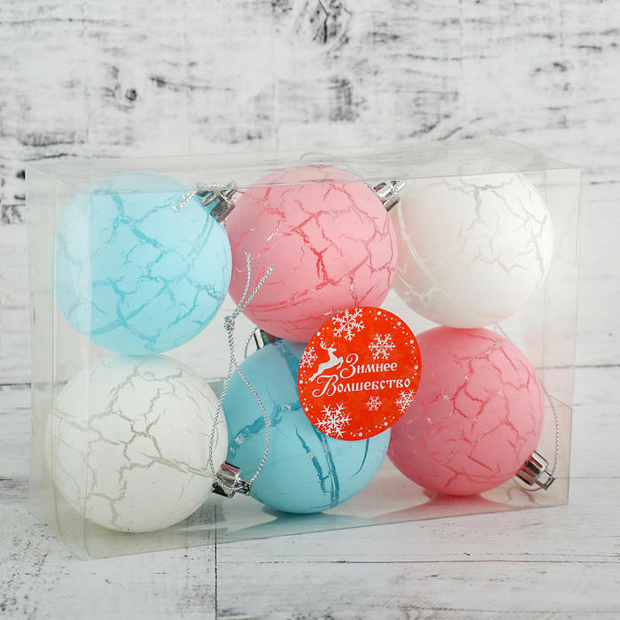 Ёлочные игрушки «Кракле», шары новогодние, d=6 см, набор 6 шт., МИКС — Характеристики