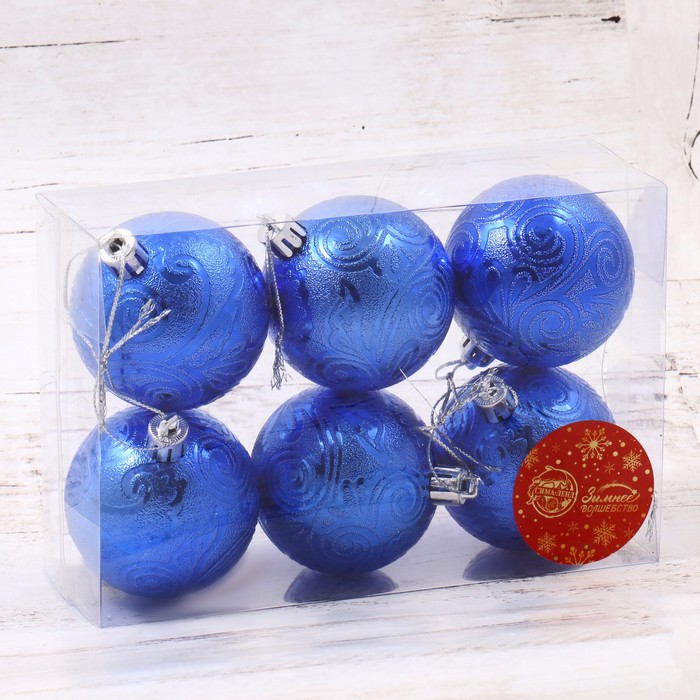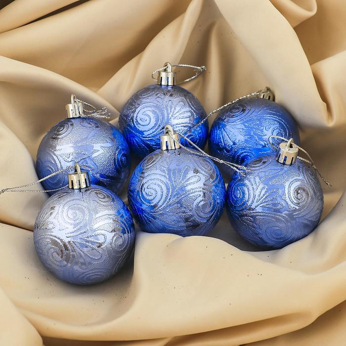 Ёлочные игрушки «Кружевной узор», шары новогодние, d=6 см, набор 6 шт., синий — Характеристики
