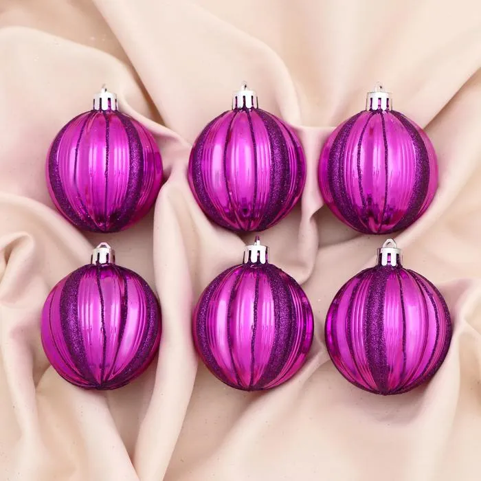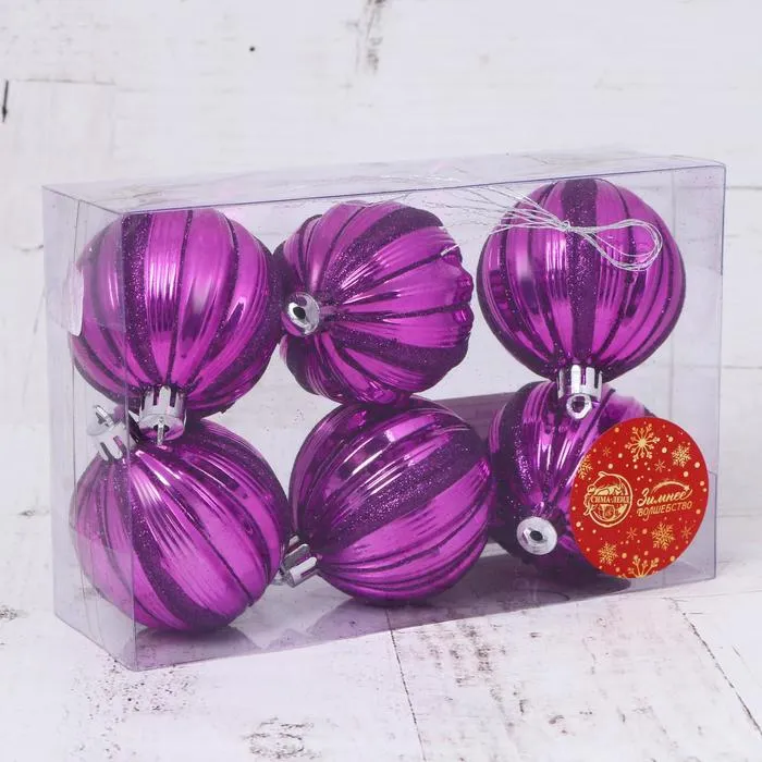 Набор из шести сиреневых ёлочных шаров диаметром 6 см сочетает в себе элементы советского дизайна и фьюжн-стиля, дополненный изящными рисунками. Эти украшения добавляют в новогодний декор нотки ретро и современности одновременно, создавая выразительный и гармоничный образ праздника.