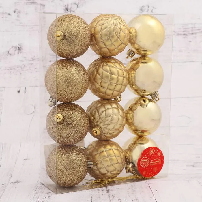 Ёлочные игрушки «Ларго», пластиковые, набор 12 шт., d=6 см, золотистый — Характеристики