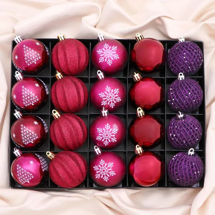 Ёлочные игрушки «Лаурен снежинка», шары новогодние, d=6 см, набор 20 шт., фиолетово-красный — Характеристики