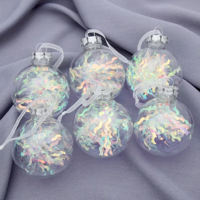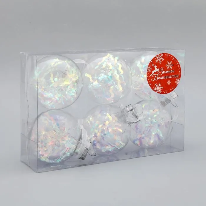Ёлочные игрушки «Льдинка - серпантин», шары новогодние, d=6 см, набор 6 шт., прозрачный — Характеристики