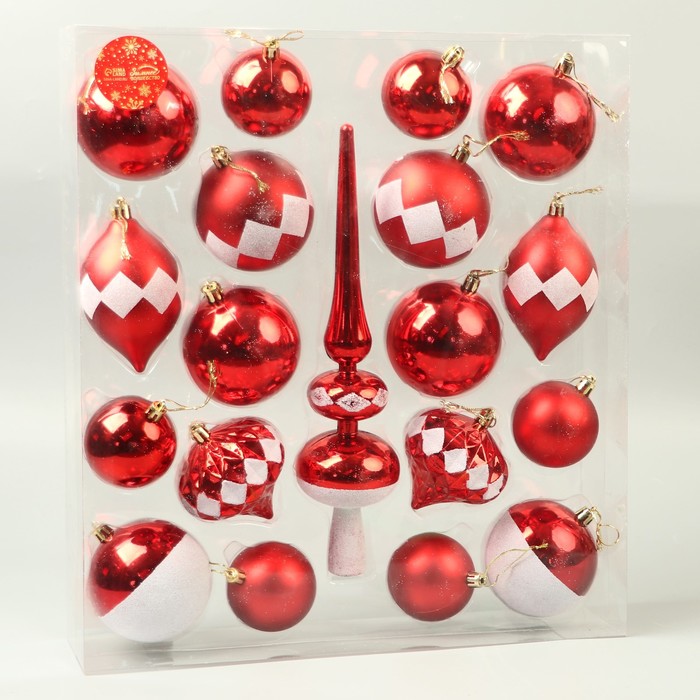 Ёлочные игрушки «Льдинки», новогодние, набор 19 шт., красно-золотой — Характеристики
