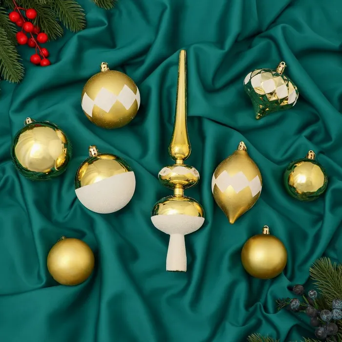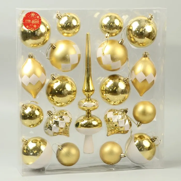 Ёлочные игрушки «Льдинки», пластиковые, набор 19 шт., бело-золотой — Характеристики