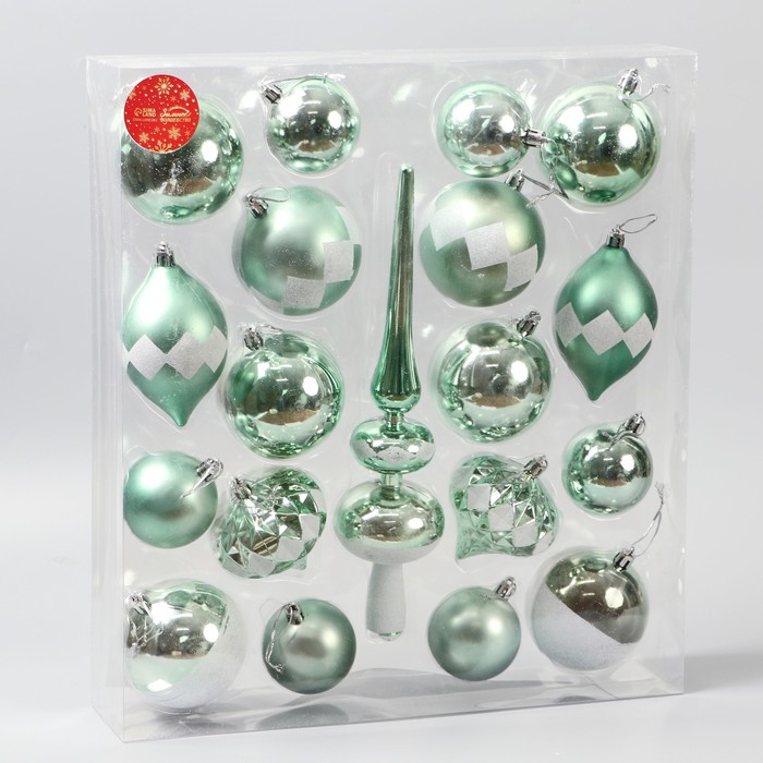 Ёлочные игрушки «Льдинки», шары новогодние, набор 19 шт., зелёный — Характеристики