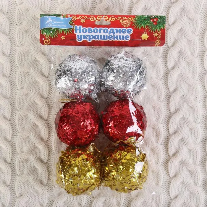 Ёлочные игрушки «Лорри», шары новогодние, набор 6 шт., d=6 см, МИКС — Характеристики