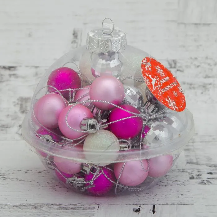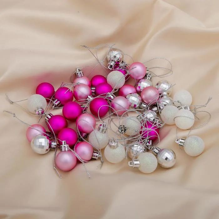Ёлочные игрушки «Малышки в шарике», шары новогодние, d=2.5 см, набор 40 шт., белый/розовый — Характеристики