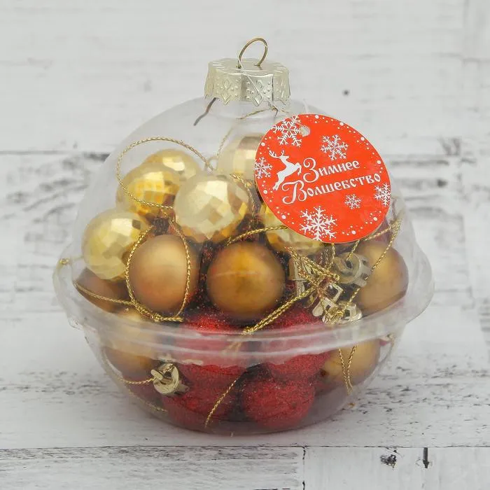 Ёлочные игрушки «Малышки в шарике», шары новогодние, d=2.5 см, набор 40 шт., красный/золотистый — Характеристики