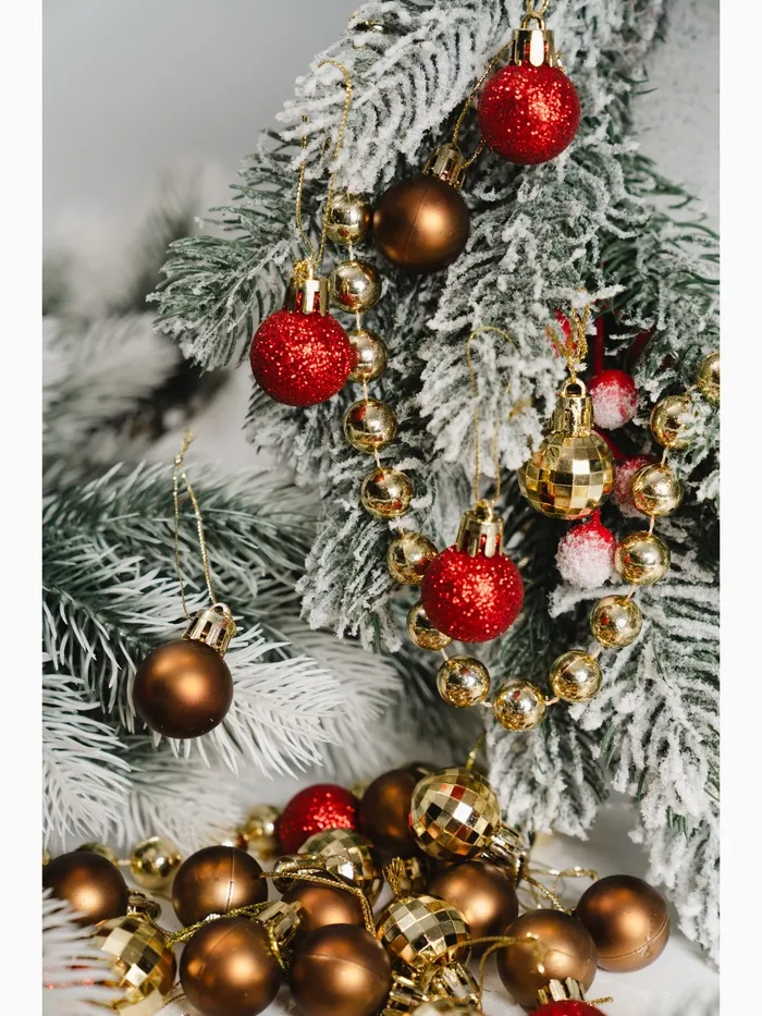 Эти шары создают образ Нового года, наполненный светом, теплом и добрыми традициями. Красные и золотистые оттенки добавляют дереву ритма и настроения, но не перегружают дизайн. Используйте игрушки как основу или как часть уже готовой композиции — они одинаково хорошо работают в разных интерьерах и идеях оформления.