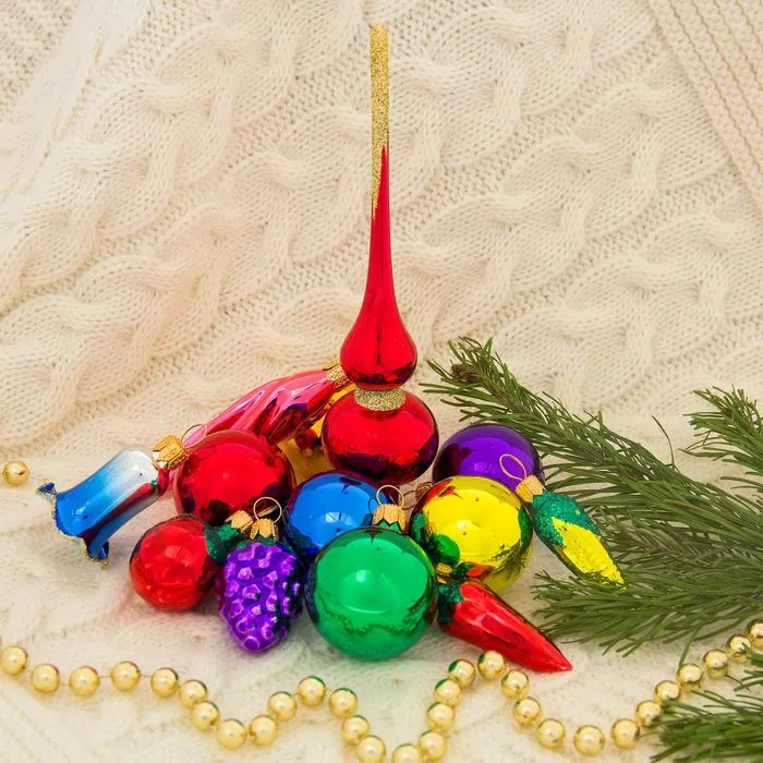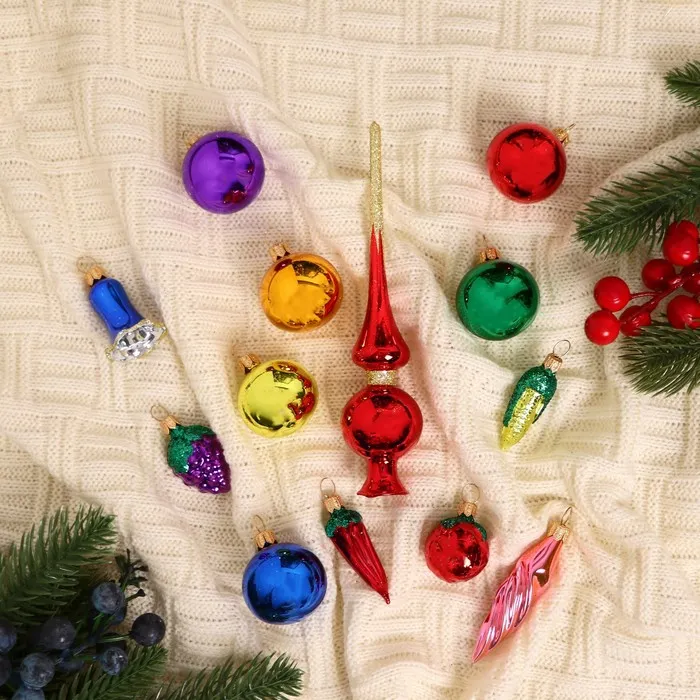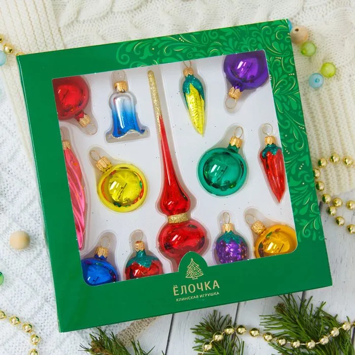 Новогодний набор ёлочных игрушек «Малышок» — это яркий и доброжелательный акцент для украшения праздничной ёлки. В комплекте 13 стеклянных игрушек в разноцветном исполнении, выполненных в духе советского дизайна с современным фьюжн-подходом. Это решение для тех, кто хочет создать атмосферу зимнего праздника с акцентом на свет, форму и семейное тепло.