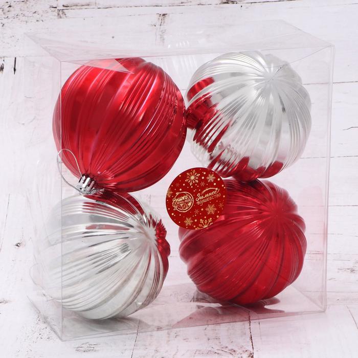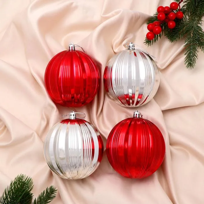 Ёлочные игрушки «Марсельеза», шары новогодние, d=10 см, набор 4 шт., серебристый/красный — Характеристики