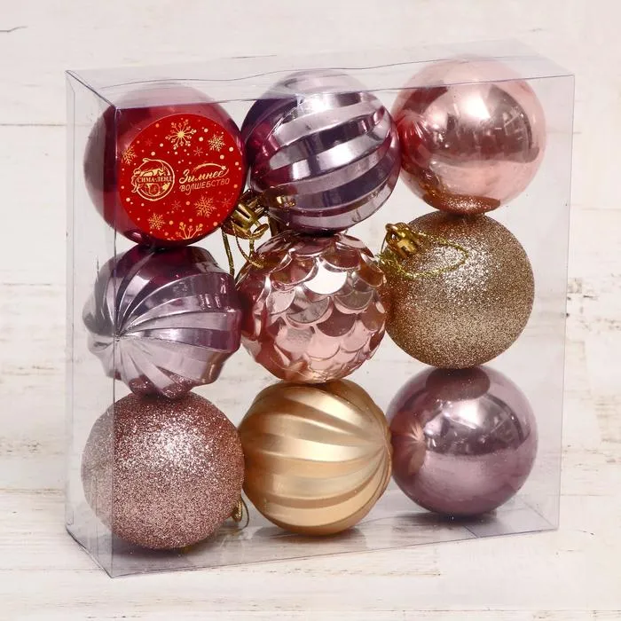 Ёлочные игрушки «Маскарад ассорти», шары новогодние, d=6 см, набор 9 шт., МИКС — Характеристики