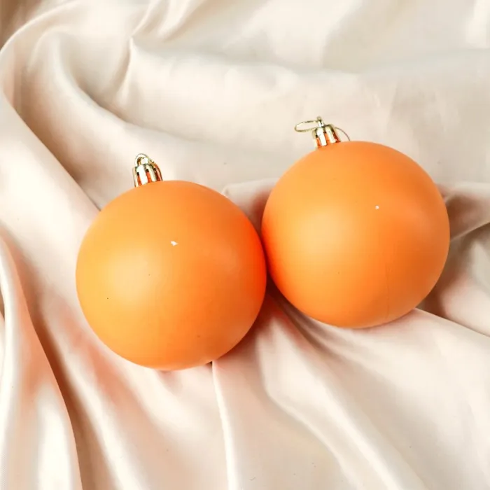 Пластиковые новогодние шары оранжевого цвета с матовой поверхностью — это акцентное, но сдержанное решение для праздничного декора. Игрушки диаметром 8 см выполнены в лаконичной форме и подходят под современный стиль фьюжн. Набор из 2 элементов станет ярким, но уместным дополнением на ёлке или подарит уже сложившемуся оформлению нотку зимнего тепла.