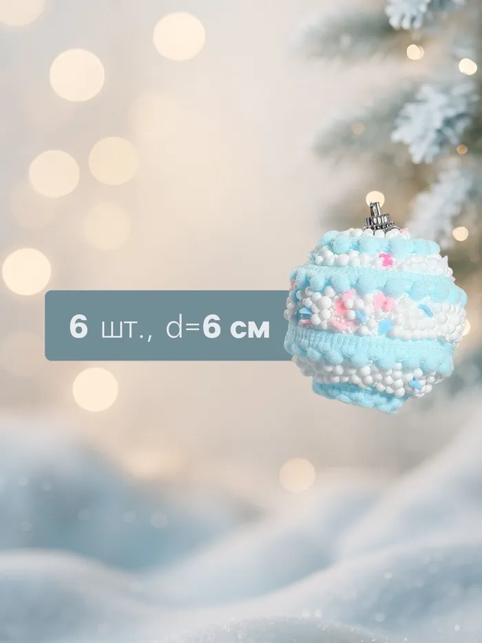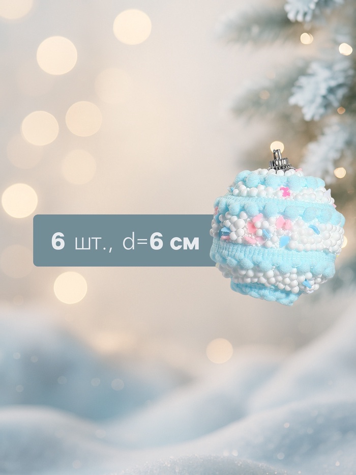 Ёлочные игрушки «Маттео», шары новогодние, d=6 см, 6 шт. голубой — Характеристики