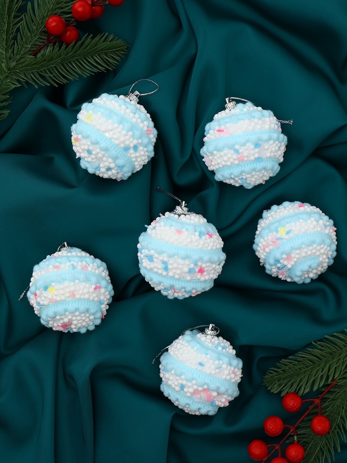 - Шесть шаров нежного голубого оттенка без рисунка.