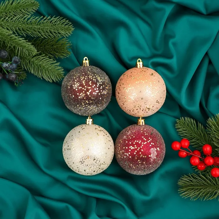 Ёлочные игрушки «Мэдисон», шары новогодние, набор d=8 см, 4 шт., МИКС — Характеристики