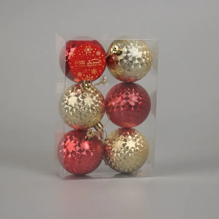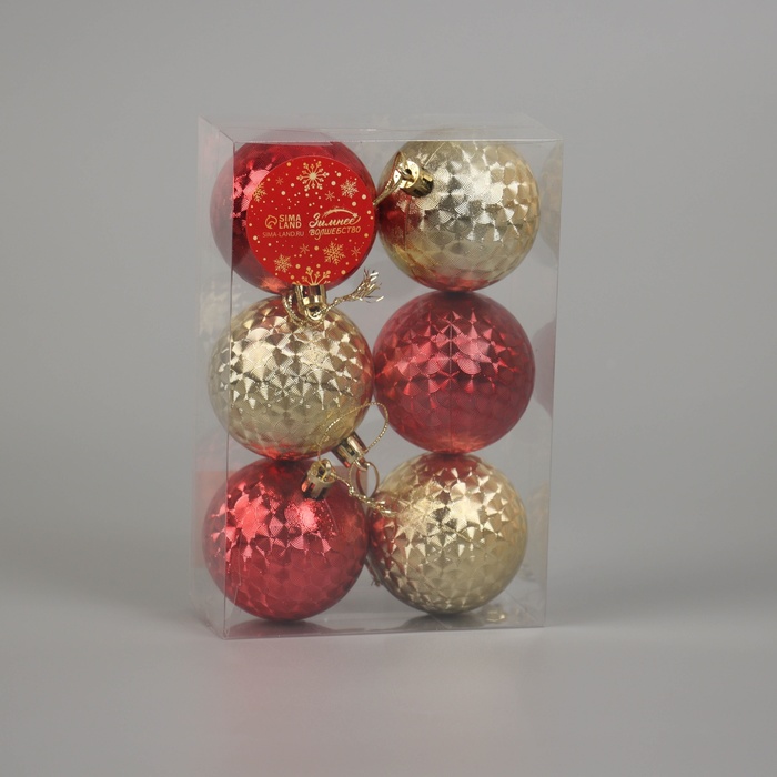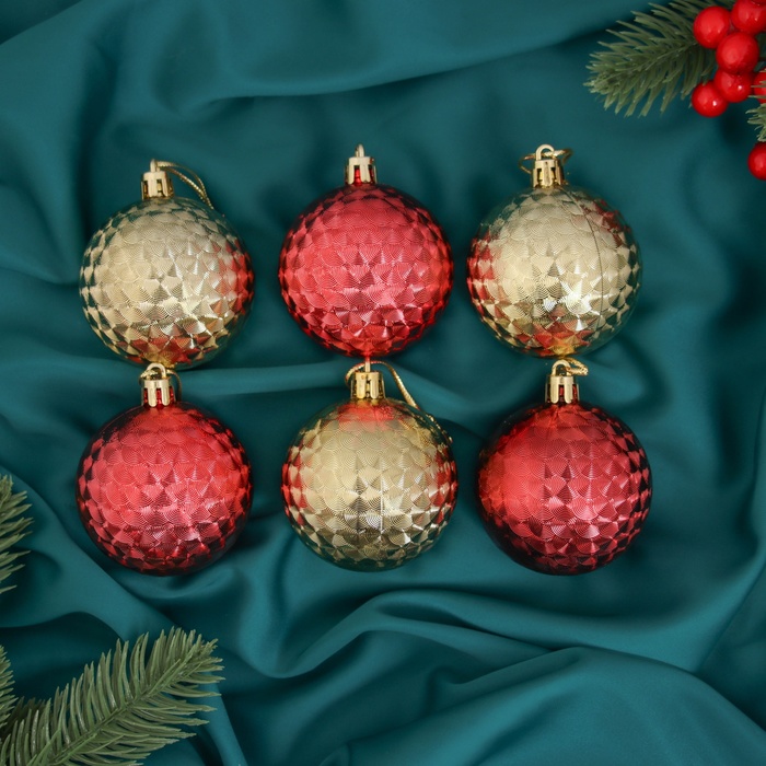 Ёлочные игрушки «Мелания», шары новогодние, d=6 см, набор 6 шт., золотистый/красный — Характеристики