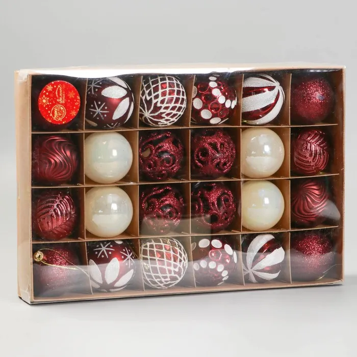 Ёлочные игрушки «Мелодия» ассорти люкс, шары новогодние, d=6 см, набор 24 шт., бело-бордовый — Характеристики