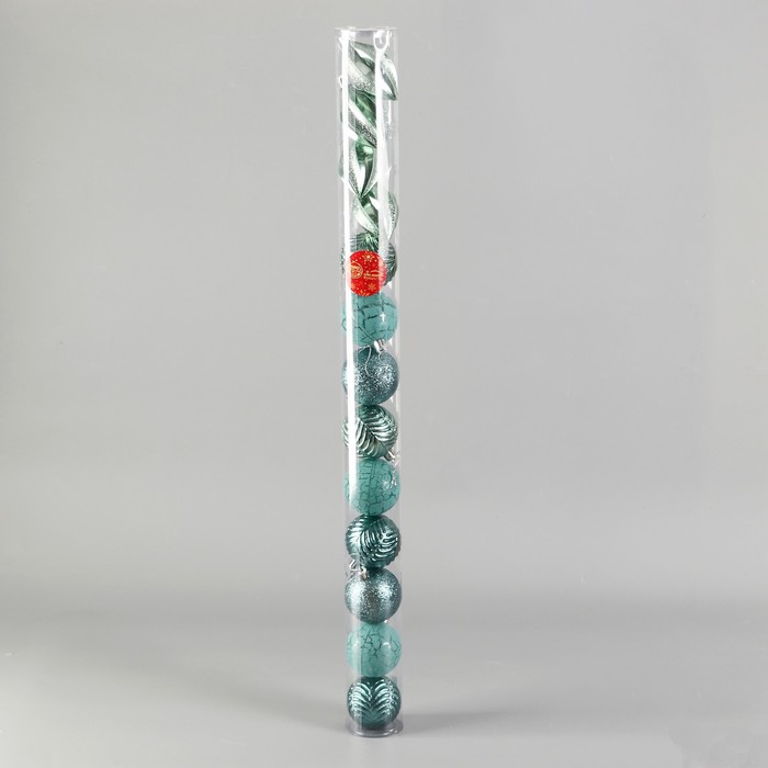 Эти шары подходят как основной элемент декора, так и в роли фонового акцента. Их можно расставить по всей кроне для полного преображения ёлки или использовать выборочно — чтобы выделить отдельные зоны. Зелёный оттенок напоминает хвойные ветви после снегопада — он создаёт ощущение праздника без лишнего блеска и пафоса.
