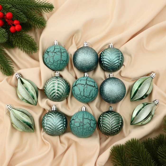 Эти шары подходят как основной элемент декора, так и в роли фонового акцента. Их можно расставить по всей кроне для полного преображения ёлки или использовать выборочно — чтобы выделить отдельные зоны. Зелёный оттенок напоминает хвойные ветви после снегопада — он создаёт ощущение праздника без лишнего блеска и пафоса.