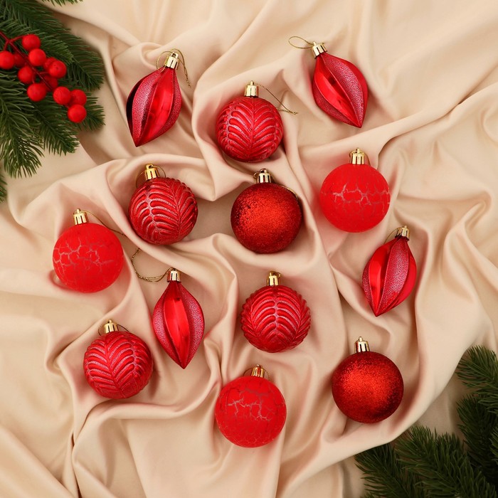 Ёлочные игрушки «Мелодия», шары новогодние, 6 см, набор 13 шт., красный — Характеристики