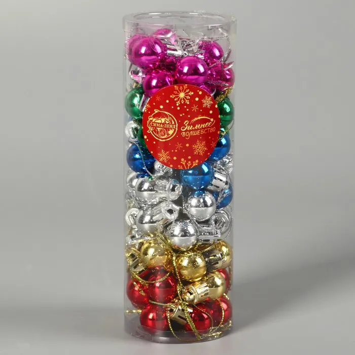 - Комплектация — 60 шт., достаточно для плотного украшения ёлки или создания яркой композиции.