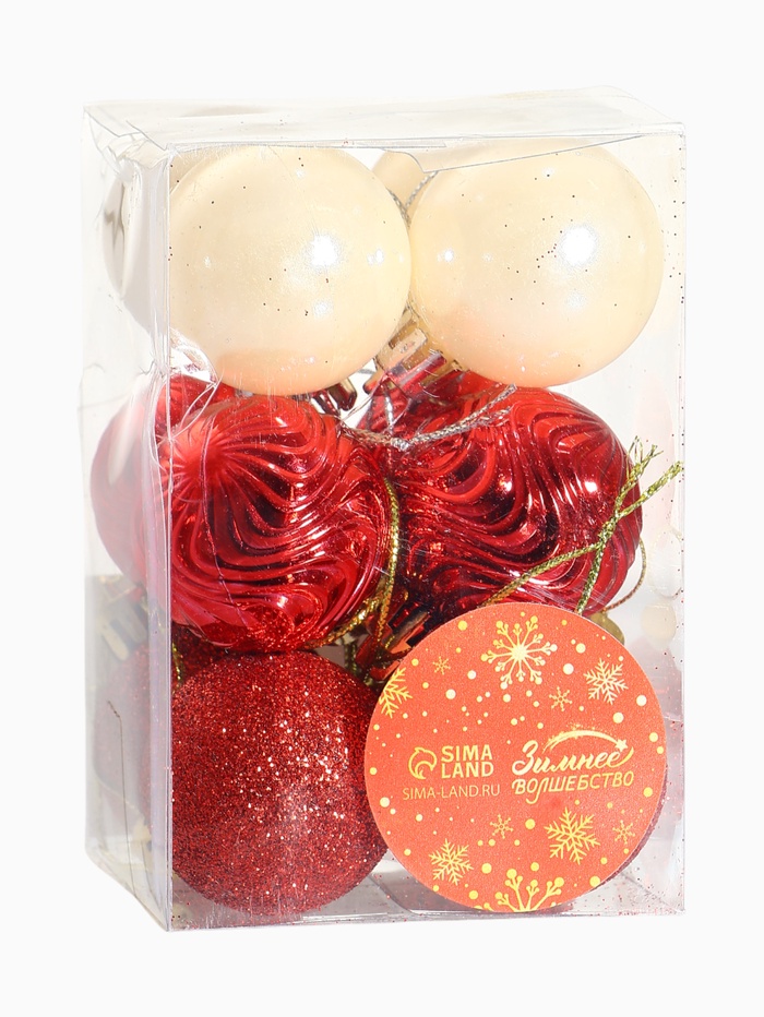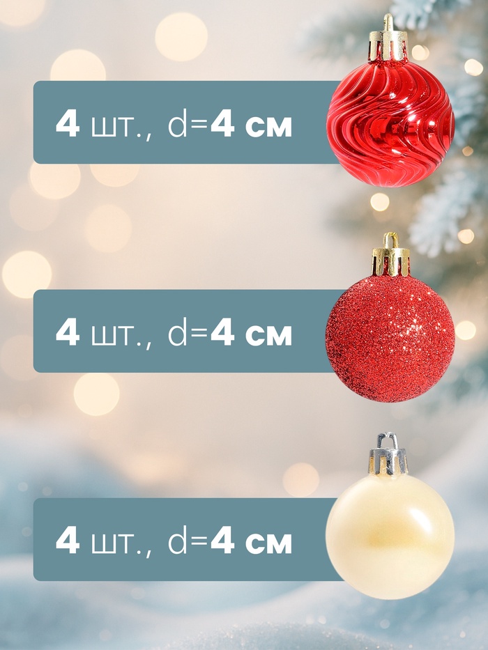 Ёлочные игрушки «Мелодия», шары новогодние, d=4 см, набор 12 шт., белый/красный — Характеристики