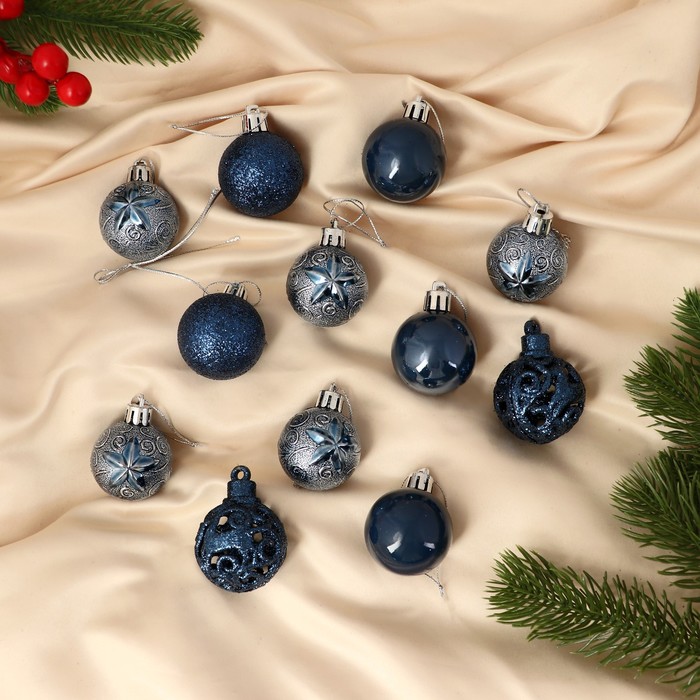 Ёлочные игрушки «Мелодия», шары новогодние, d=4 см, набор 12 шт., орнамент блеск, синий — Характеристики