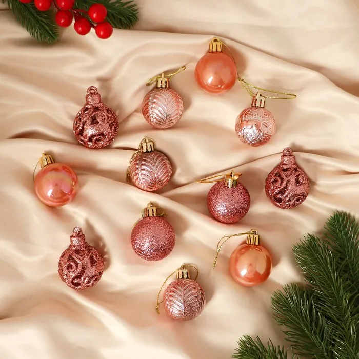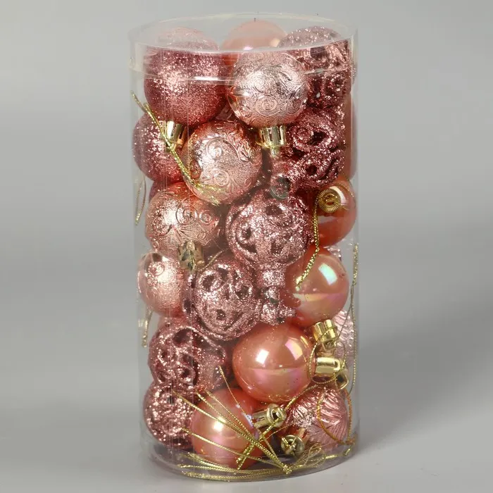 Ёлочные игрушки «Мелодия», шары новогодние, d=4 см, набор 30 шт., орнамент, розовый — Характеристики