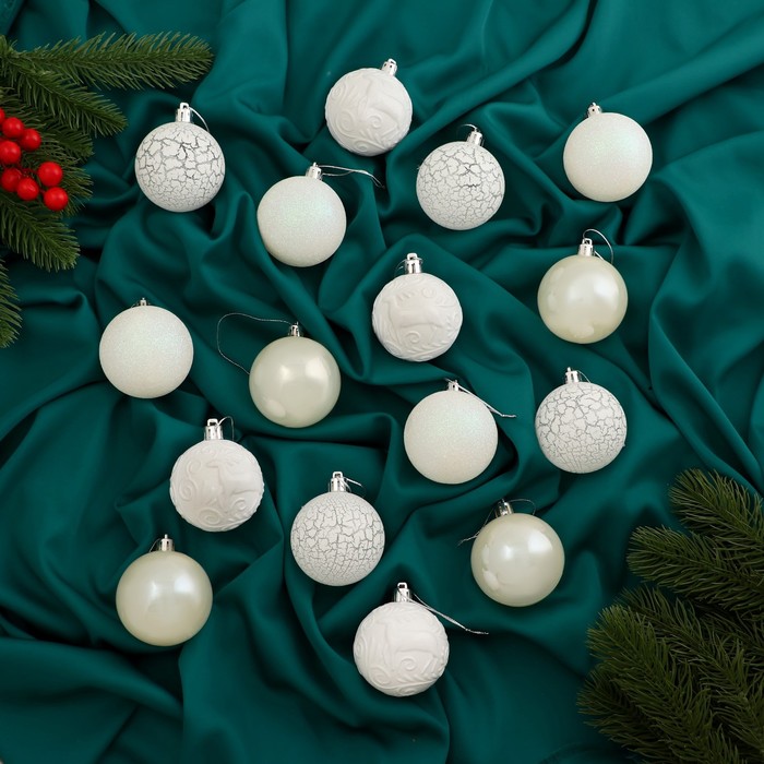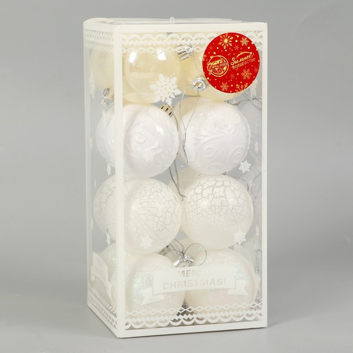 Ёлочные игрушки «Мелодия», шары новогодние, d=6 см, 16 шт., узор треск, белый — Характеристики
