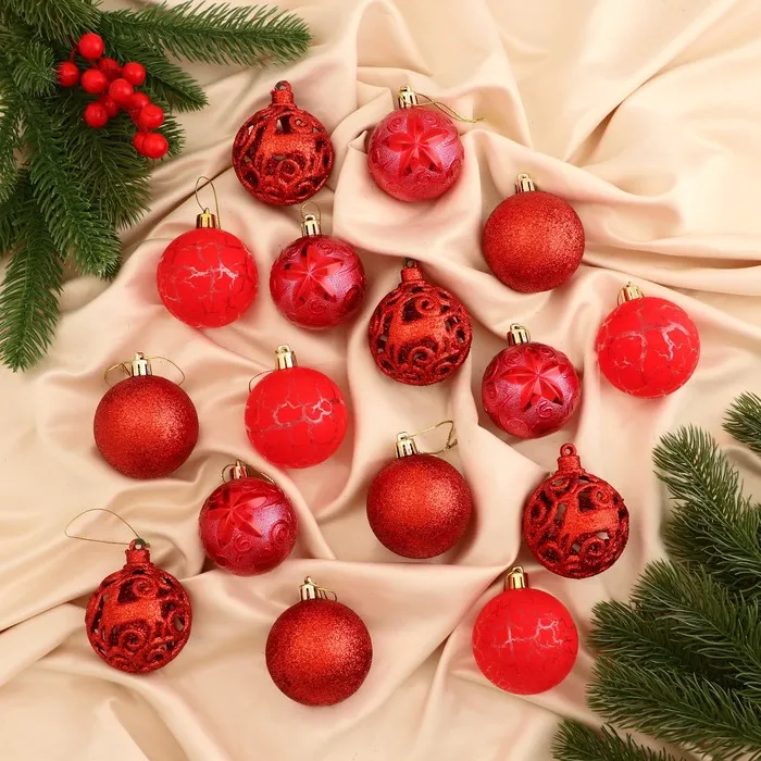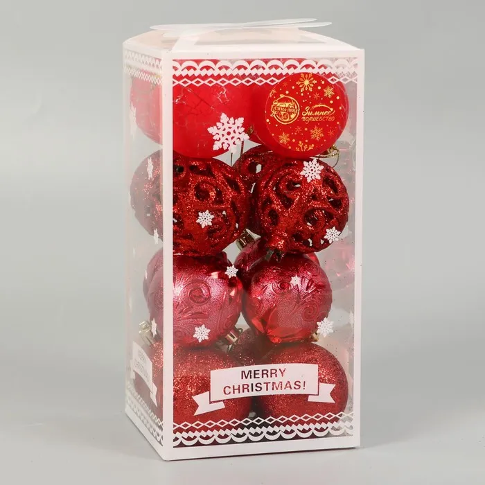 Ёлочные игрушки «Мелодия», шары новогодние, d=6 см, набор 16 шт., орнамент, красный — Характеристики