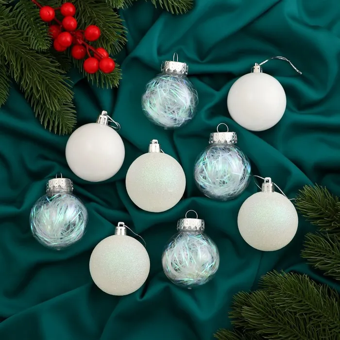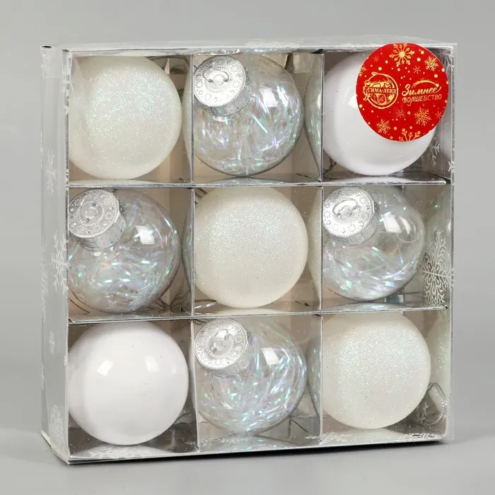Ёлочные игрушки «Мелодия», шары новогодние, d=6 см, набор 9 шт., диско ассорти, белый — Характеристики