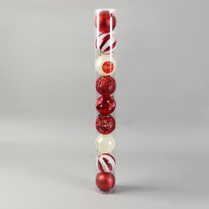 Ёлочные игрушки «Мелодия», шары новогодние, d=8 см, набор 9 шт., орнамент полосы, бело-красный — Характеристики