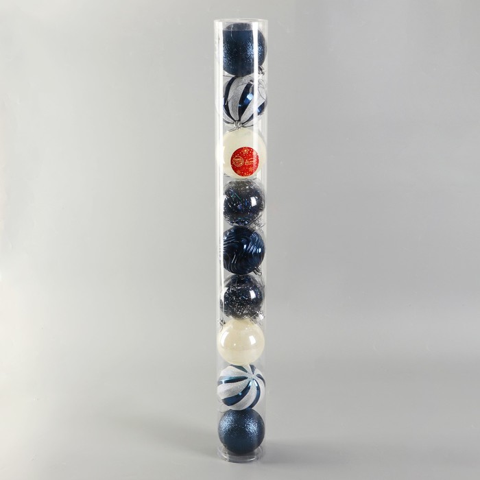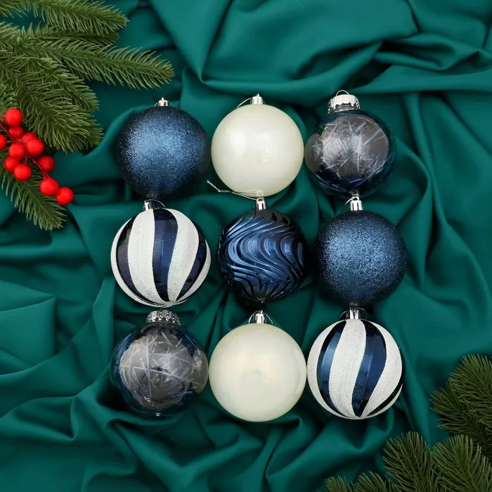 Ёлочные игрушки «Мелодия», шары новогодние, d=8 см, набор 9 шт., полосы, бело-синий — Характеристики
