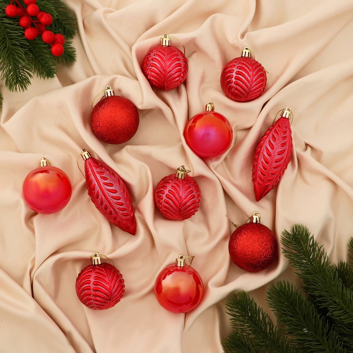 Ёлочные игрушки «Мелодия» , шары новогодние, набор 11 шт., красный — Характеристики