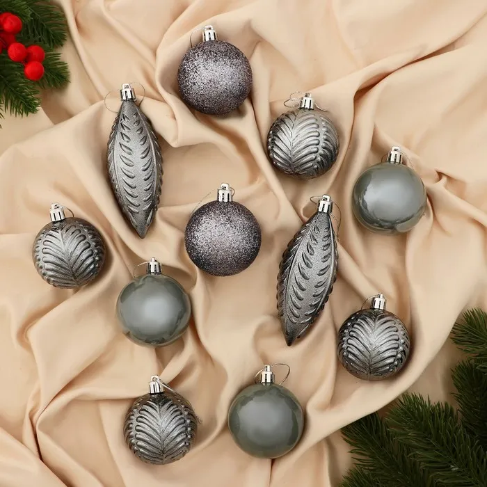 Ёлочные игрушки «Мелодия», шары новогодние, набор 11 шт., серый — Характеристики
