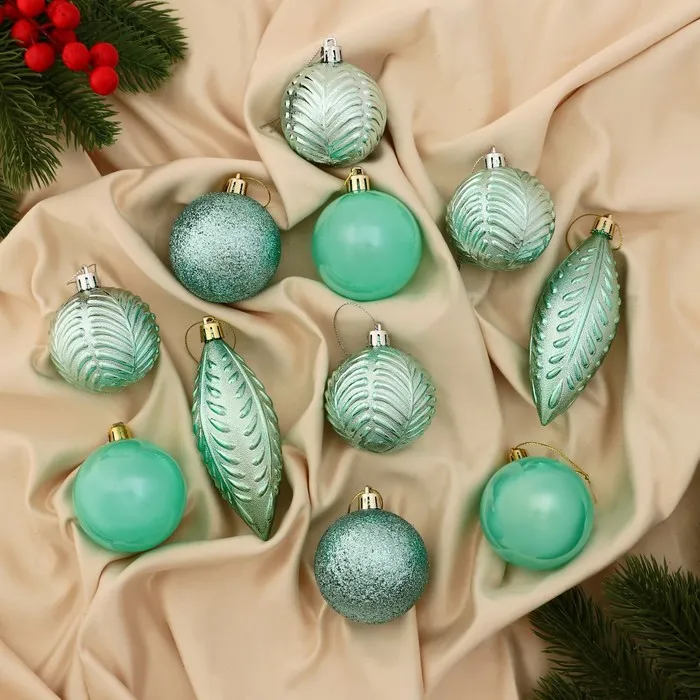 Ёлочные игрушки «Мелодия», шары новогодние, набор 11 шт., зелёный — Характеристики
