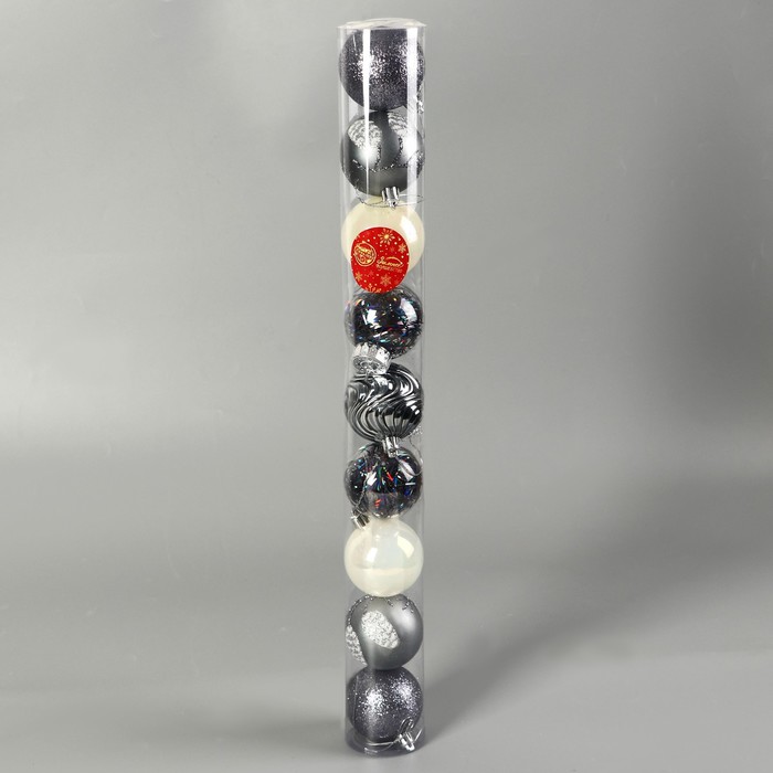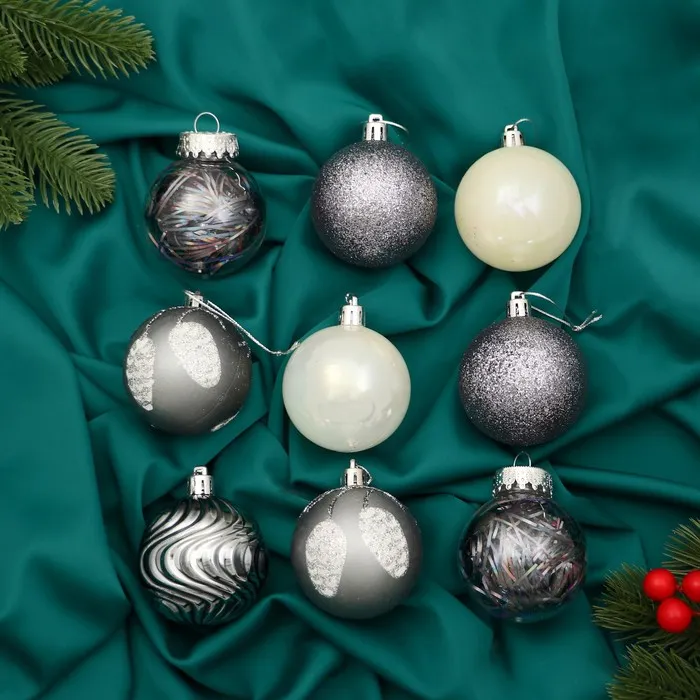 Ёлочные игрушки «Мелодия» волны диско, шары новогодние, d=6 см, набор 9 шт. серый/белый — Характеристики