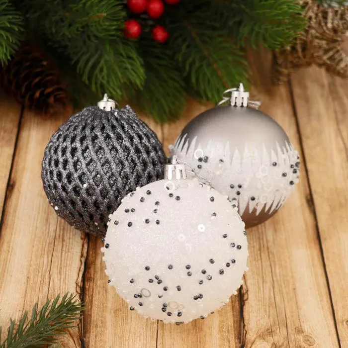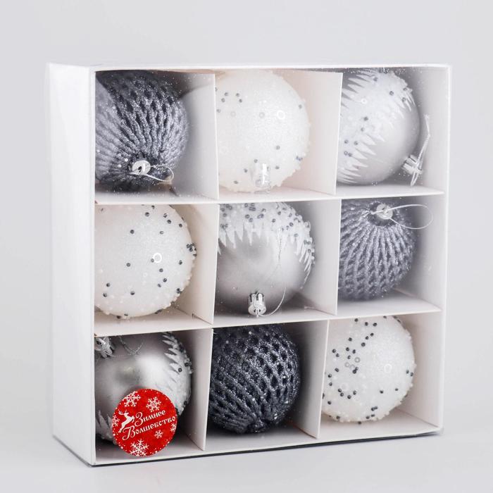 - 9 новогодних шаров в цветовой гамме белый + серебро.