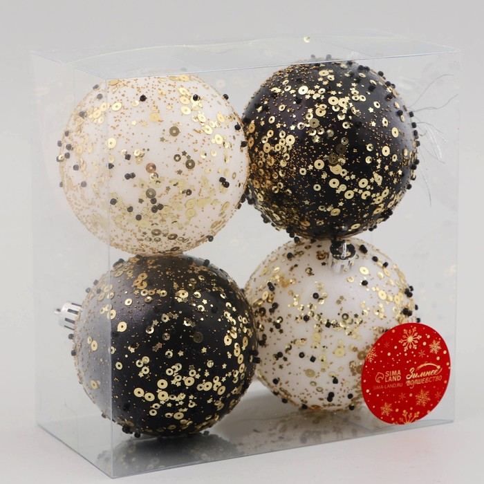Ёлочные игрушки «Мюриель» блеск, шары новогодние, d=8 см, набор 4 шт., чёрный/белый — Характеристики