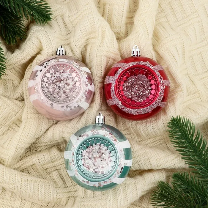 Ёлочные игрушки «Морозец», шары новогодние, d=8 см, набор 3 шт., МИКС — Характеристики