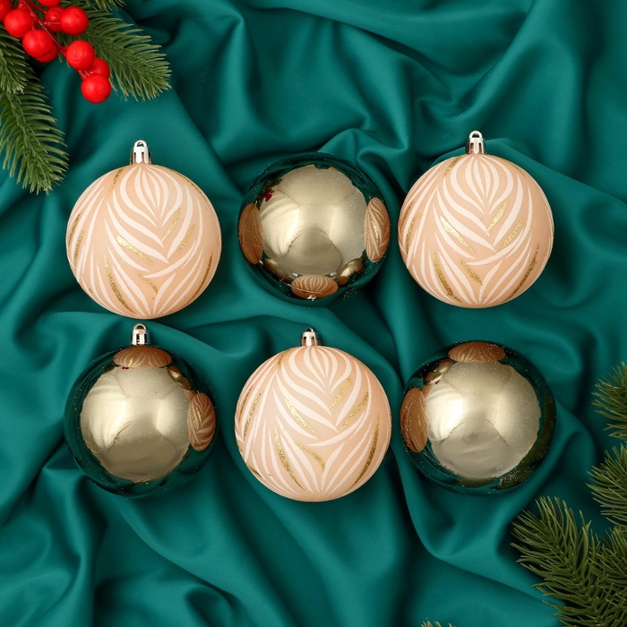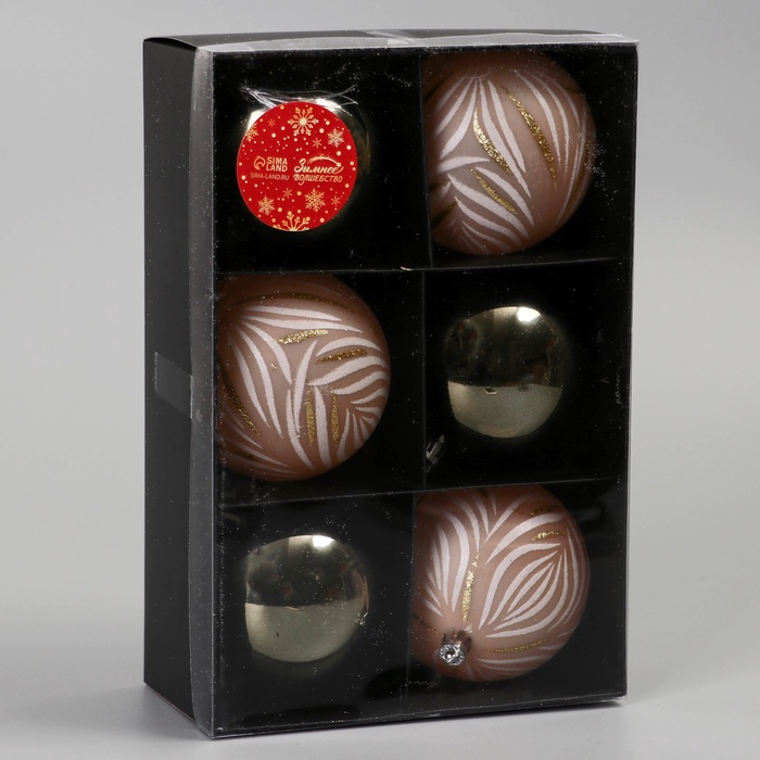 Ёлочные игрушки «Морозная росшивь», шары новогодние, d=7.5 см, набор 6 шт., штрихи, МИКС — Характеристики