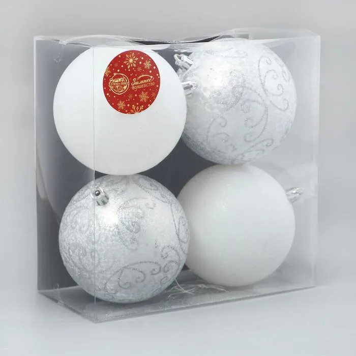 Ёлочные игрушки «Морозные узоры», шары новогодние, d=10 см, набор 4 шт., серебро белый — Характеристики