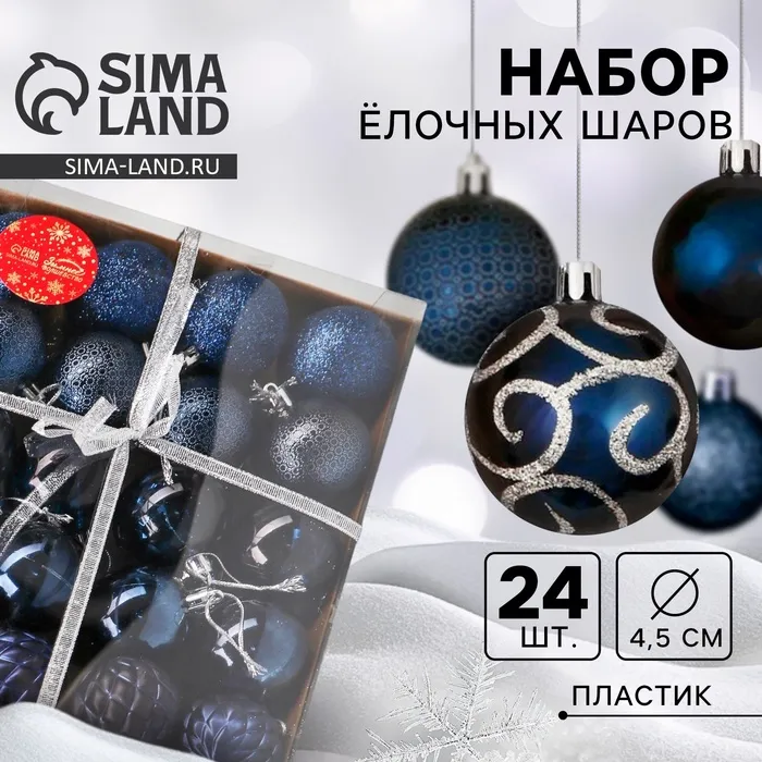 Ёлочные игрушки «Морозные узоры», шары новогодние, d=4.5 см, набор 24 шт., синий — Характеристики