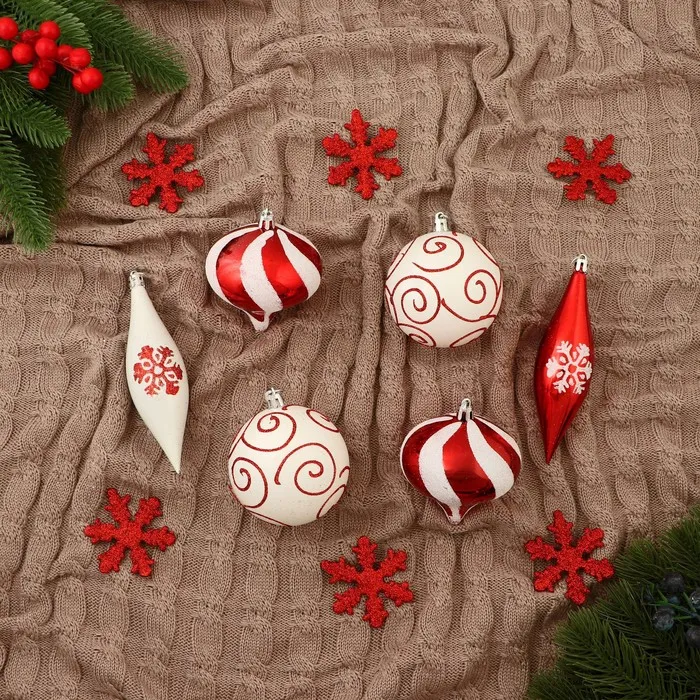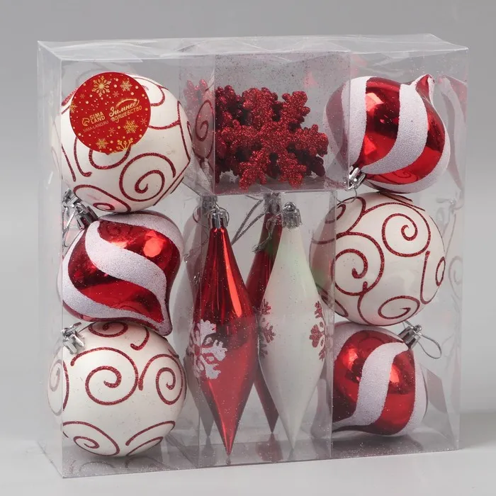Ёлочные игрушки «Морозный день», новогодние, набор 22 шт., узоры, красно-белый — Характеристики