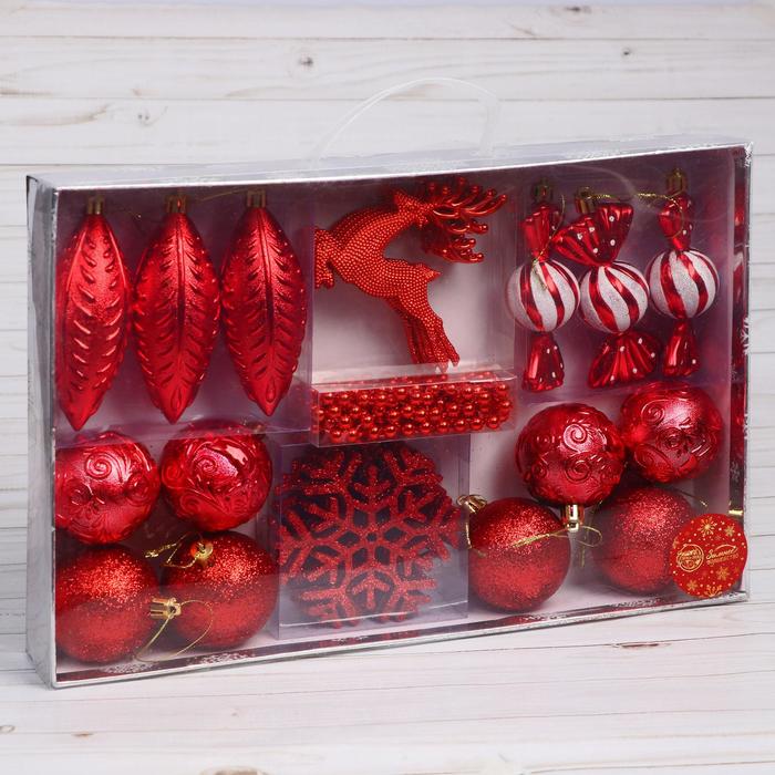 Ёлочные игрушки «Морозный день», новогодние, набор 27 шт., красный — Характеристики